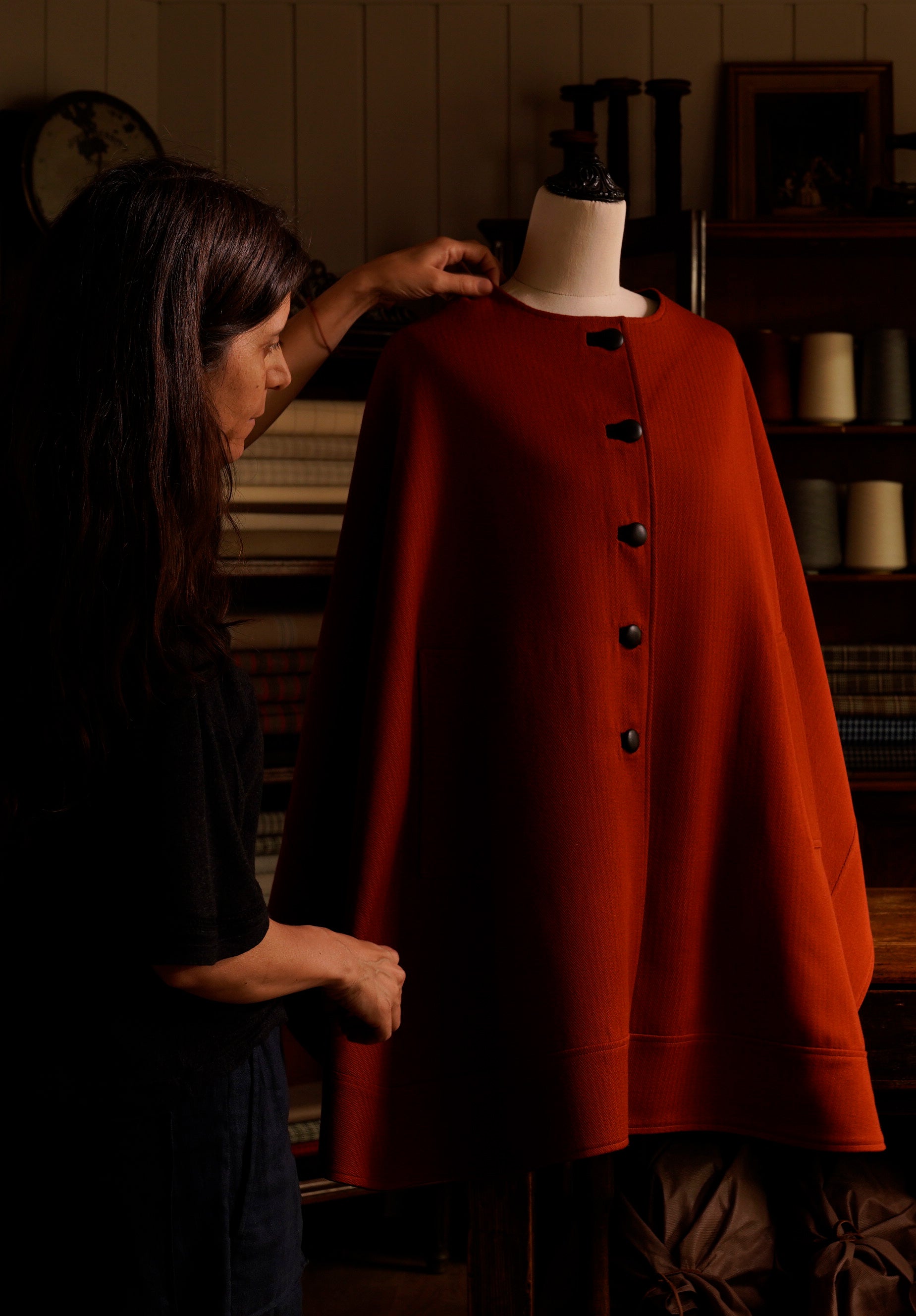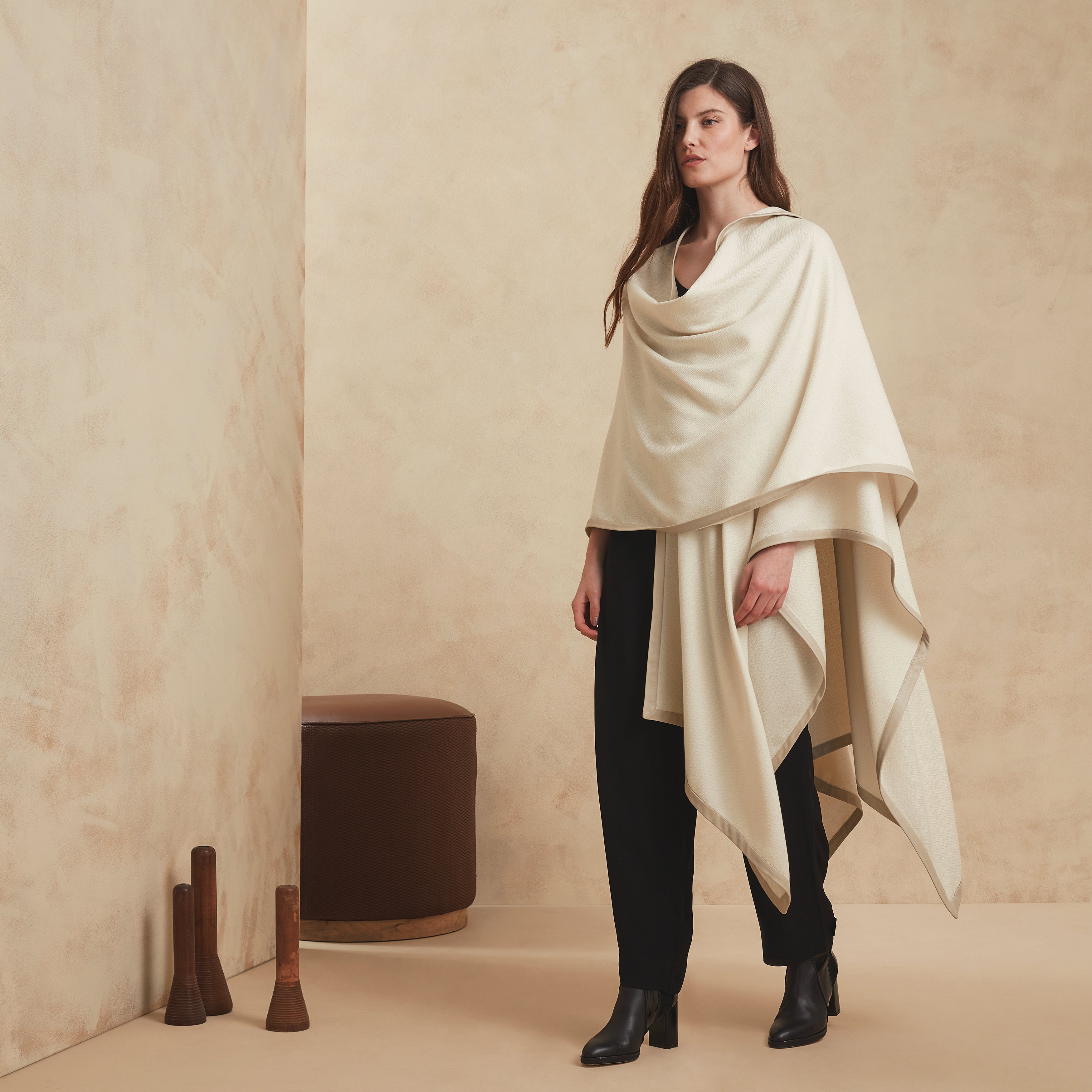 The cape Kai was made in hand-looms from the 19th century in our textile mill with artisanal techniques.