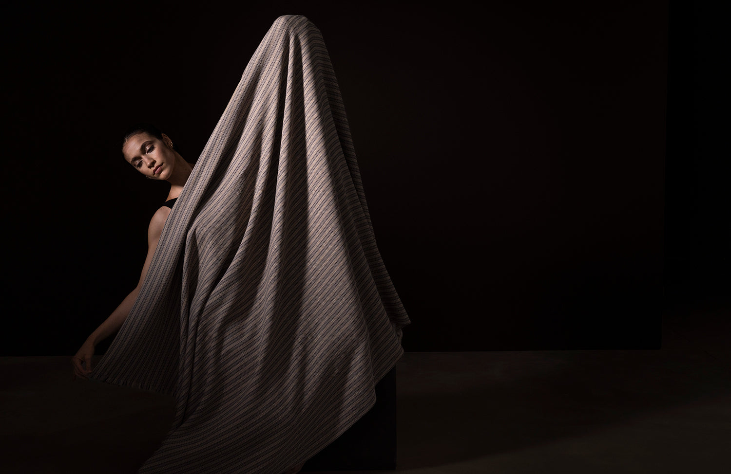 A deep blue base that recalls the continental glaciers of South Patagonia. It is crossed by geometrical lines in lead grey and inspired by the fierce beauty of storms that rage across the landscape.