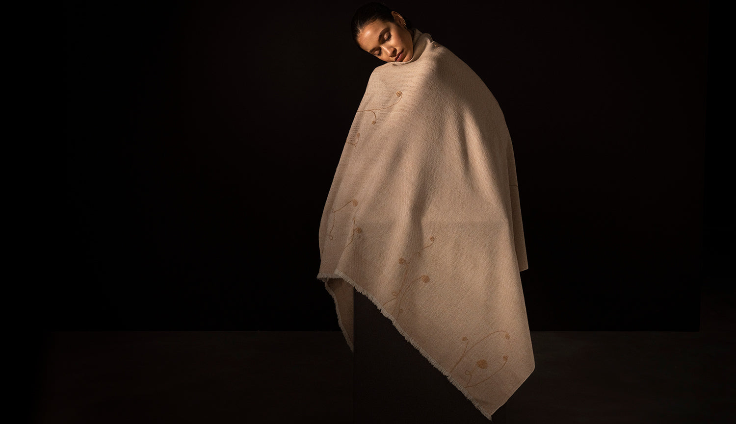 A piece that not only is handwoven in ancient looms but also meticulously embroidered by hand. The design is inspired by the wild flowers of the South of Argentina.