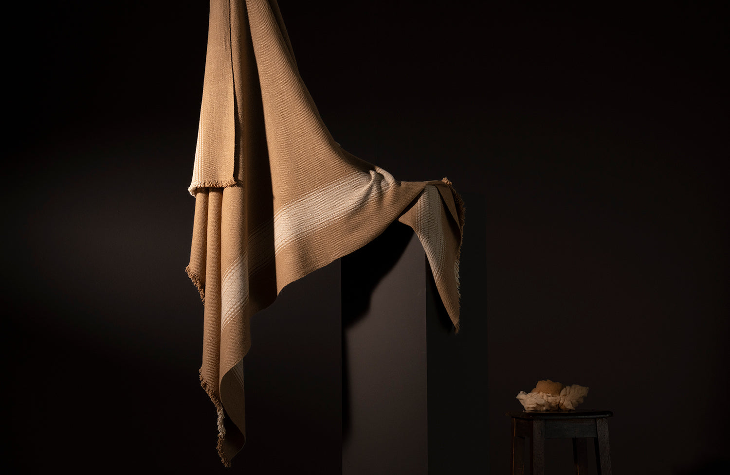 This exquisite handwoven mantle is made with the gold-brown natural color of the Vicuña, the world’s finest, rarest natural yarn.