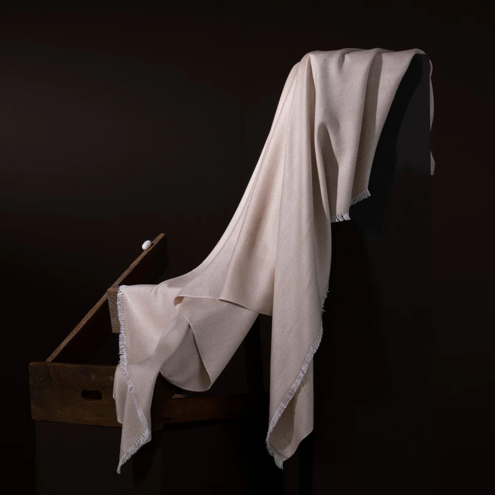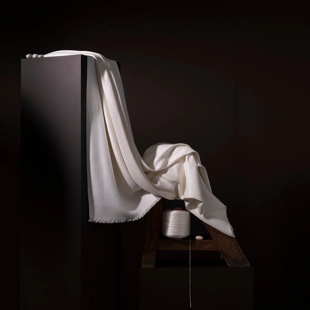 This pure silk mantle, woven in a single piece, stands out for its incomparable shine.