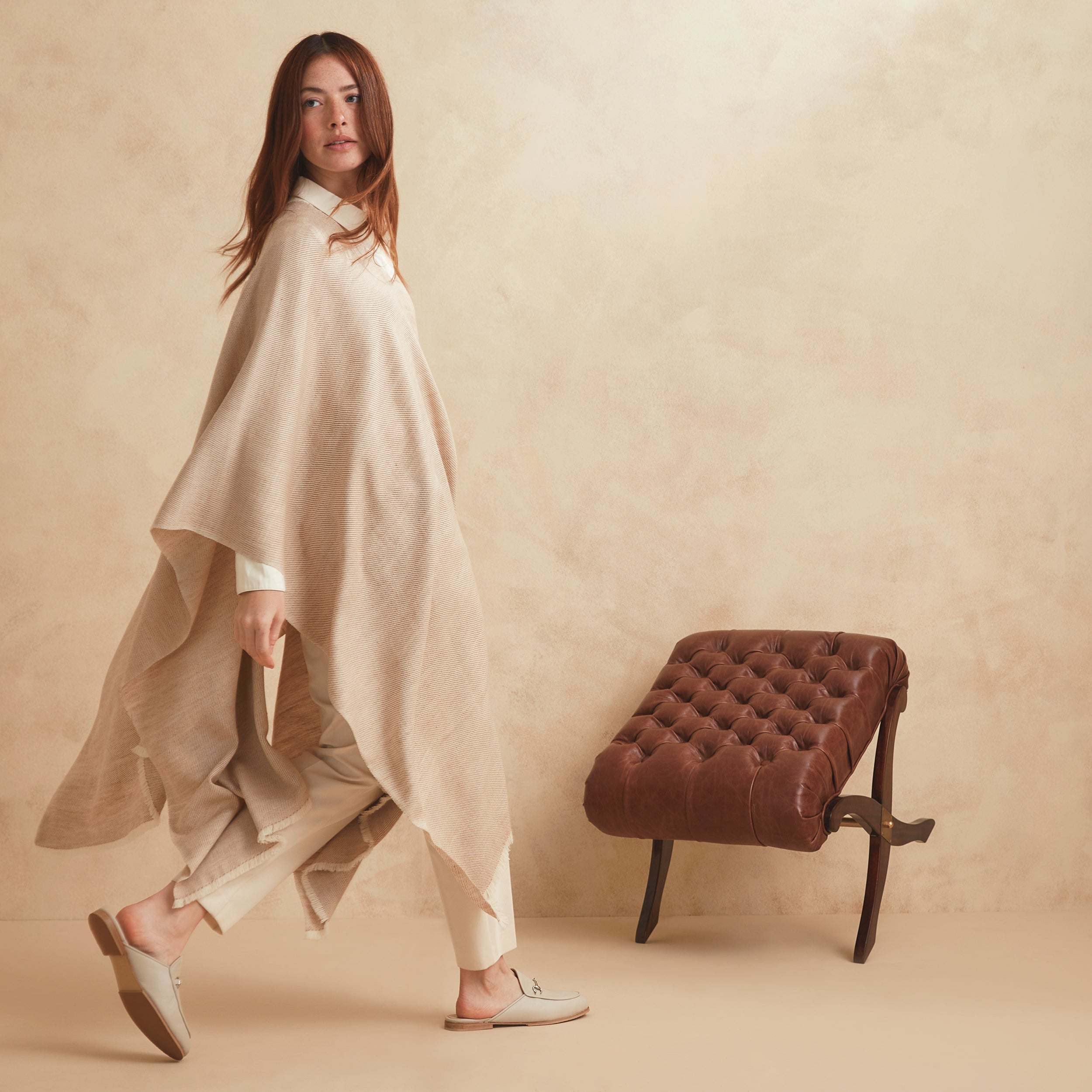 An elegant garment that maintains the characteristics of the traditional poncho. Undoubtedly, a timeless textile with an Argentine imprint.