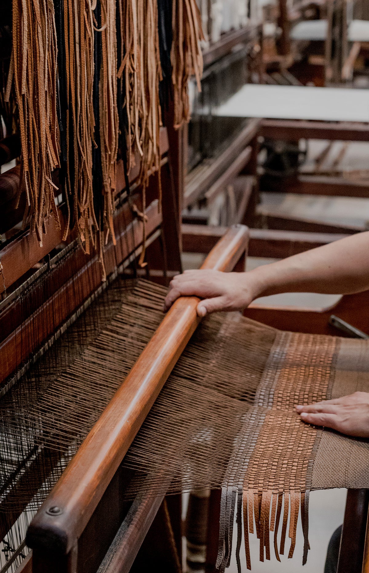 Our passion for weaving has led us to explore a variety of noble materials and natural fibers. Along this path, we developed a special weave with the most iconic material used by gauchos in the Pampas: authentic Argentinean leather.