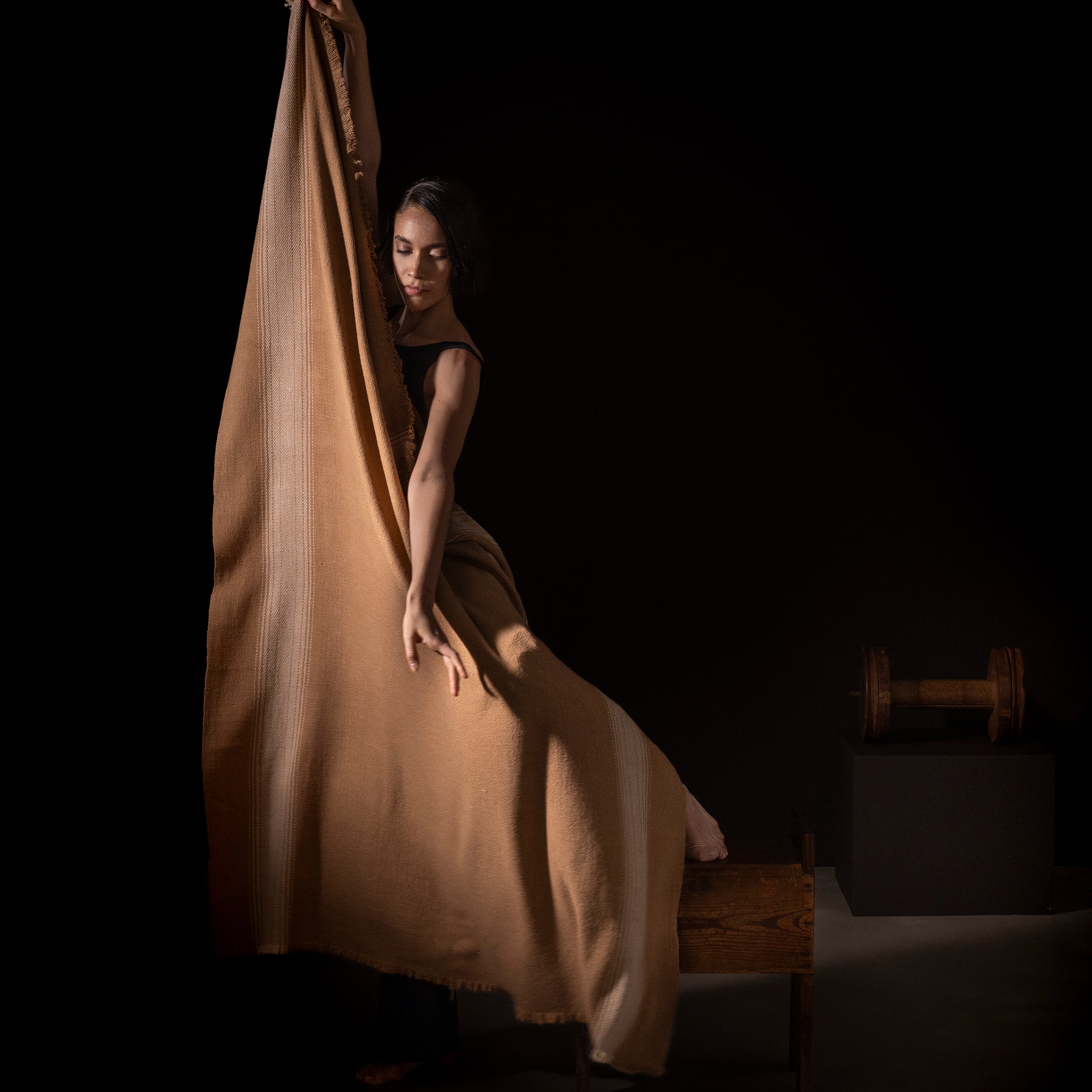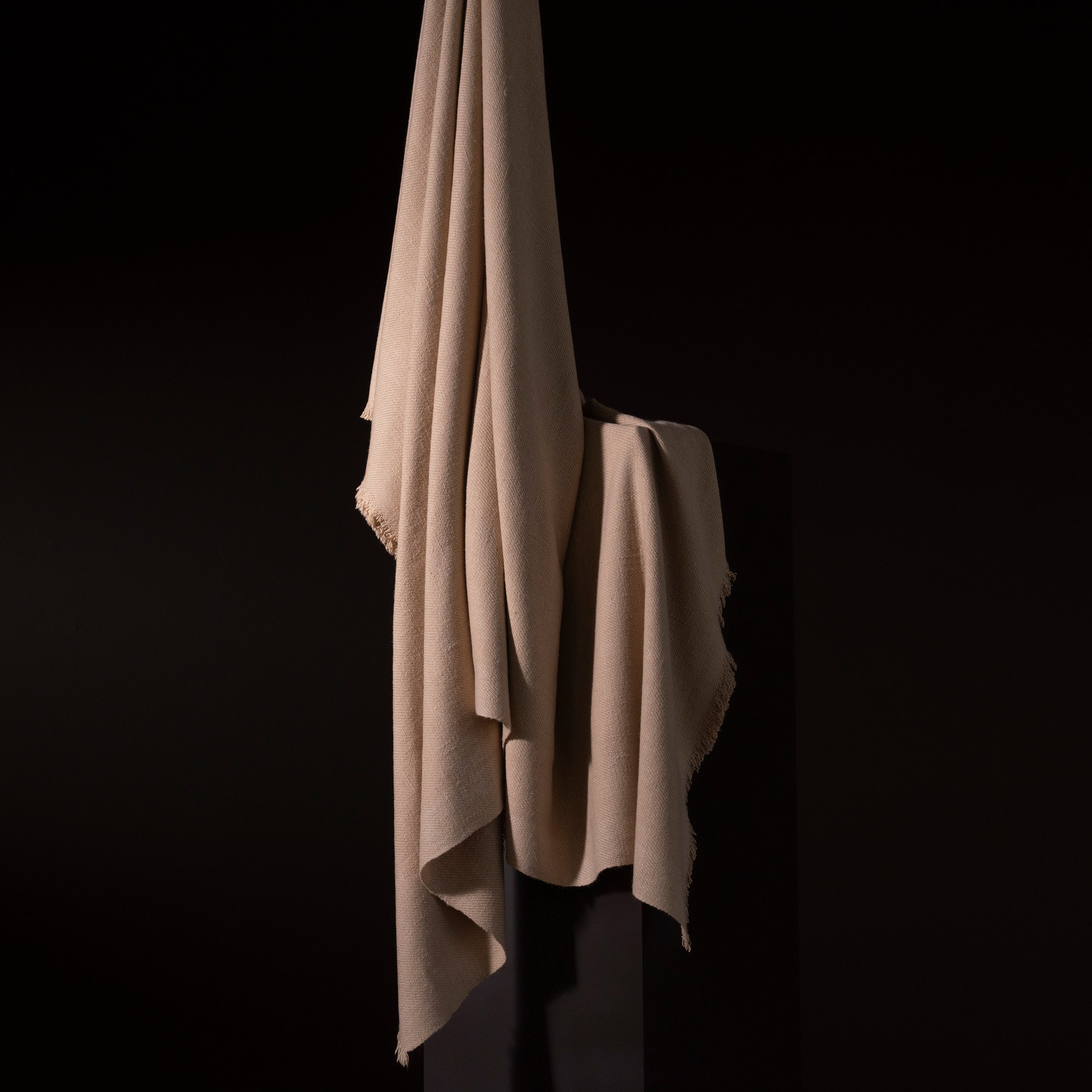 Just a few grams of this fiber per animal can be obtained every two years. The result is an incredible mantle of a rare light beige tone with an incomparable brightness. Truly unique.