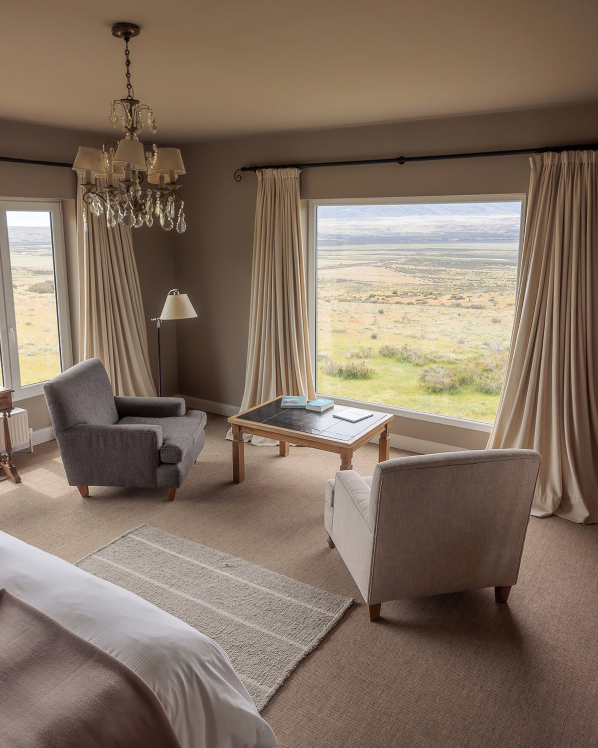 Textiles for curtains, upholstery, and blankets were added to the hotel, as well as a special fragrance inspired by the wind and the Patagonian glaciers.